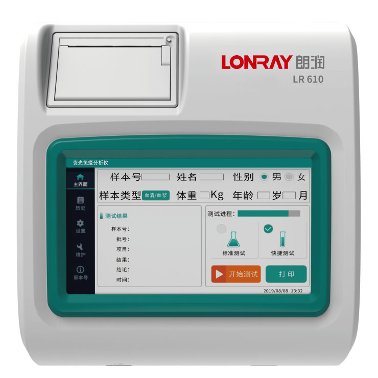 熒光免疫分析儀8大優(yōu)勢 定量檢測: 所有項目定量檢測;快速測試: 檢測時間低至3分鐘;高精度:變異系數(shù)低于10%;靈敏度高:檢測限可達pg/ml;更智能化:二維碼數(shù)據(jù)管理;安卓系統(tǒng):智能操作系統(tǒng);更人性化:自帶提手便于攜帶;選配電池:實現(xiàn)戶外移動檢測。